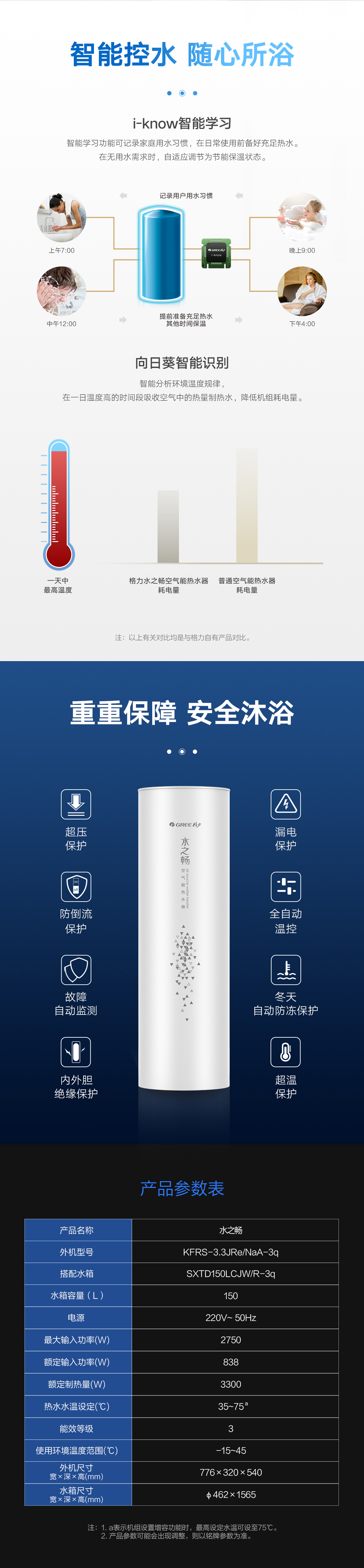 新型環保冷媒,綠色節能更高效,內置增容、向日葵、i-know等個性化功能;給您的沐浴帶來多樣化體驗