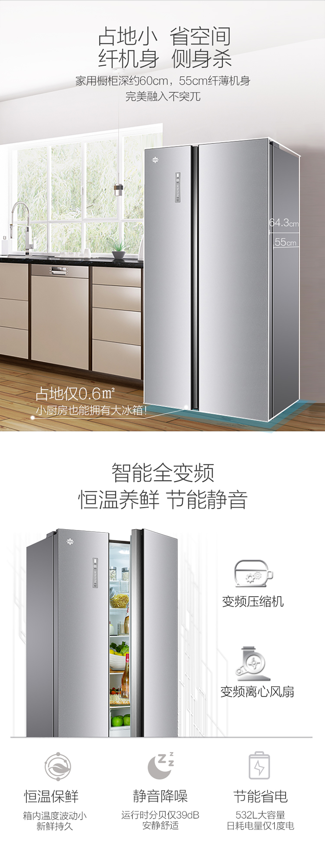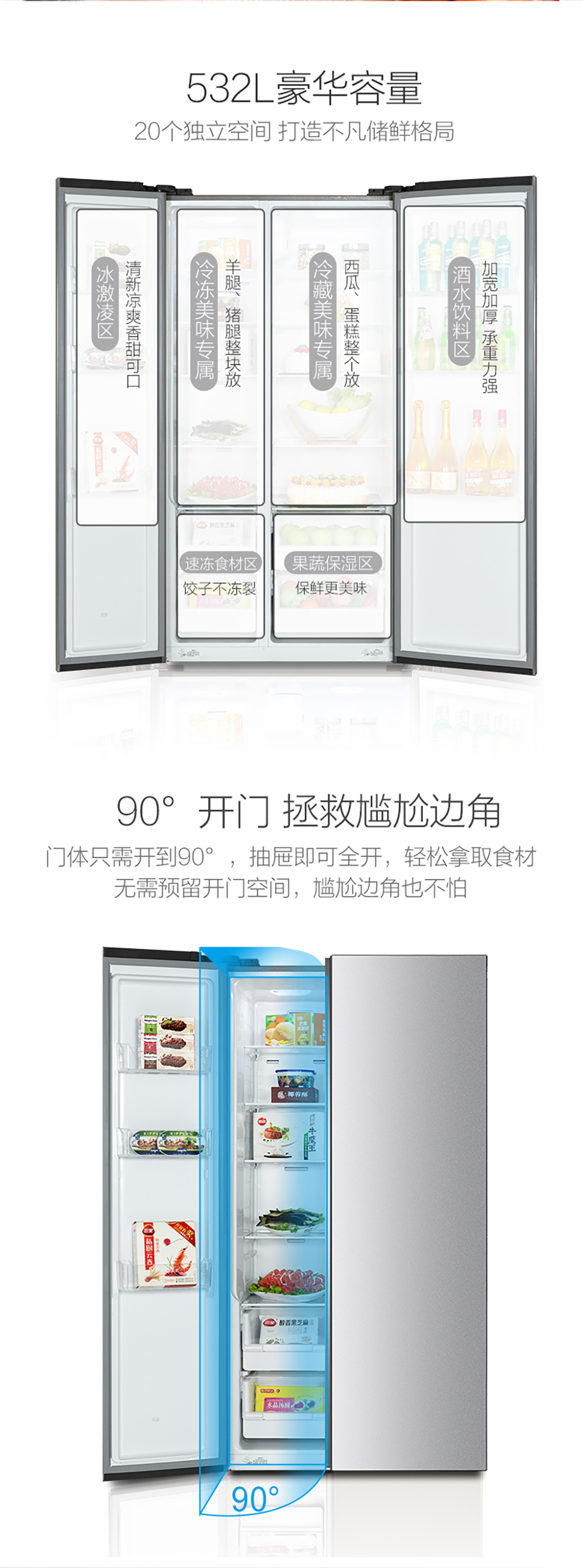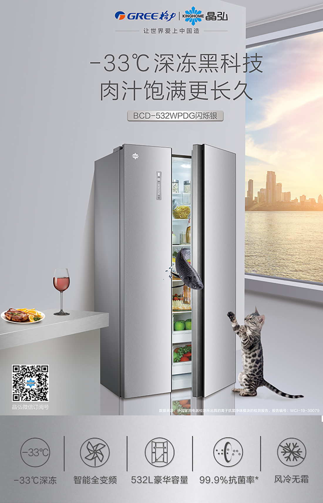 搭載-33℃深凍鎖鮮科技,肉汁飽滿更長久。采用離子長效抗菌凈味,抗菌率高達99.9%。3D沐風,風冷養鮮,無需鑿霜。
