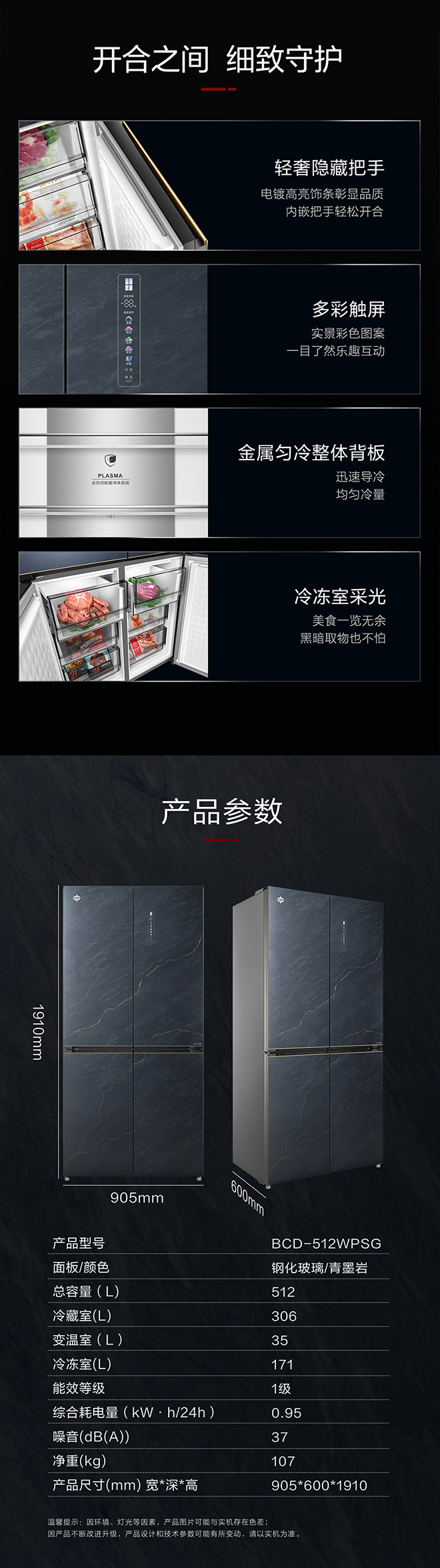 -38℃超凍鎖鮮;PLASMA全空間除菌凈味;平齊不凸出;雙通道循環(huán)散熱